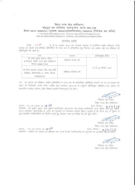 विद्यालय हॉकी (अंडर-17) बालक एव बालिका16 से 20 नवम्बर 2015 तक जालंधर